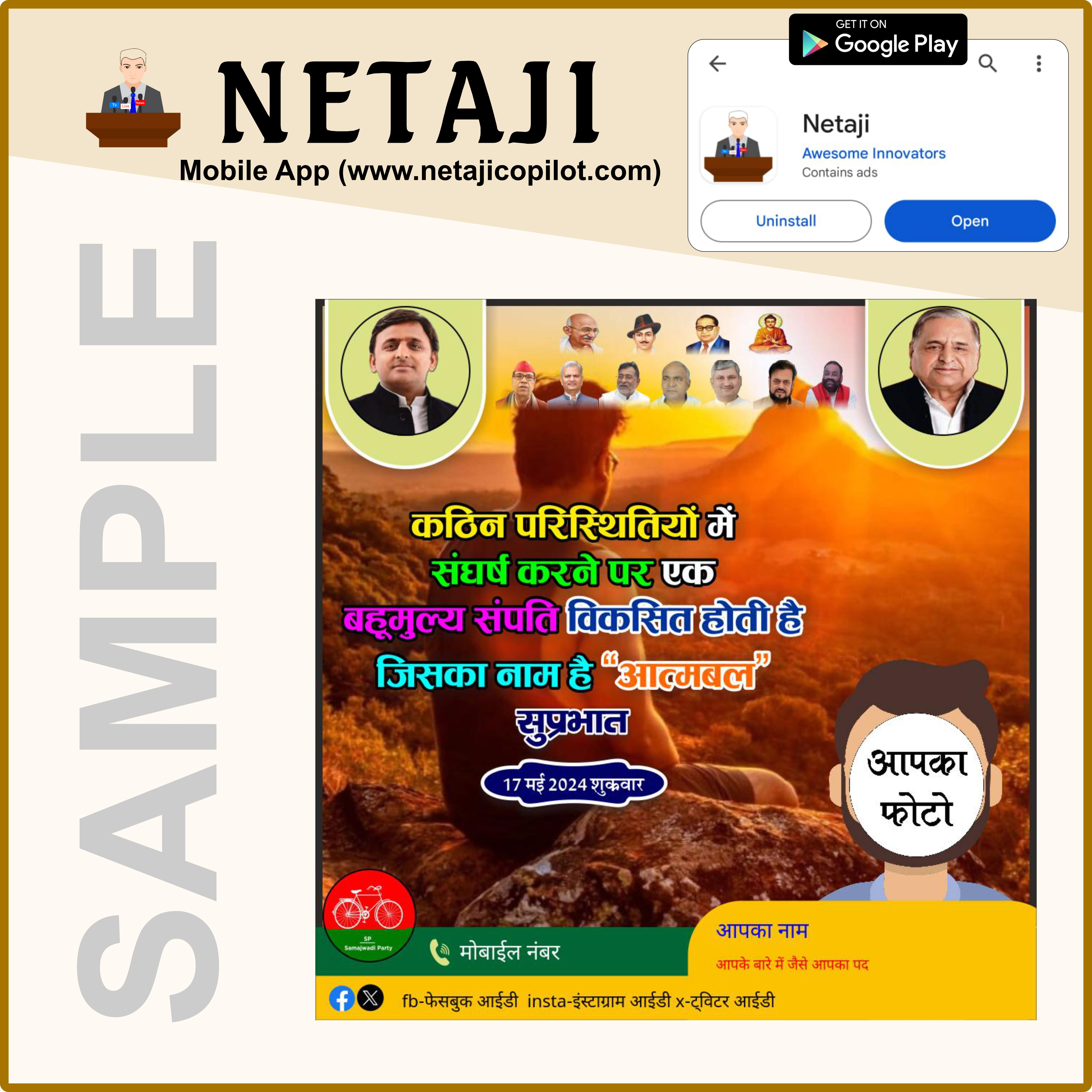 Netaji Mobile App is an automated social media branding solution platform specially designed for political figures in India. Craft your favorite political-style designs, from daily updates and festival themes to special days and trending events. The app is user-friendly, boasting a simple, clean interface with fresh and creative designs.